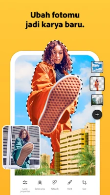 Selami dunia kreativitas tanpa batas langsung dari perangkat genggam Anda dengan Photoshop Mobile, aplikasi yang mengubah imajinasi menjadi realitas visual memukau. Dari sentuhan detail yang rumit hingga penciptaan desain grafis yang benar-benar unik, Photoshop Mobile membekali Anda dengan seluruh arsenal yang dibutuhkan untuk menghasilkan karya yang Anda banggakan. Perkaya visual Anda dengan menambahkan objek baru, menyempurnakan setiap elemen, atau bahkan mengubah seluruh komposisi gambar Anda menjadi lebih dinamis dan menarik. Eksplorasi kecanggihan alat AI serbaguna yang didukung oleh Adobe Firefly untuk pengalaman mengedit yang revolusioner.