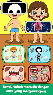 Pengalaman belajar semakin personal dengan fitur kustomisasi avatar, di mana anak dapat memilih karakter laki-laki atau perempuan, lalu menghiasnya dengan berbagai aksesori, gaya rambut, dan pakaian favorit. Aplikasi ini juga tersedia dalam 18 bahasa, memastikan pengalaman belajar yang inklusif bagi lebih banyak anak di seluruh dunia. Mari kembangkan rasa ingin tahu dan pemahaman anatomi anak Anda dengan cara yang paling inovatif dan menyenangkan bersama kami.