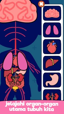 Jelajahi tubuh manusia bersama "Bagian Tubuh untuk Anak-Anak"! Aplikasi ini membuat belajar anatomi jadi mudah dan menyenangkan. Pelajari bagian tubuh, tulang, organ, gigi, dan 5 indra melalui aktivitas interaktif, model 3D, serta sinar-X. Temukan cara kerja tubuh dengan seru.