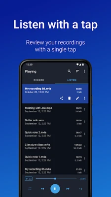 Bagi mahasiswa, tangkap setiap ceramah dan diskusi kelas dengan kejernihan maksimal, bahkan saat Anda tidak di barisan terdepan. Putar kembali materi berkali-kali sesuai kebutuhan, sesuaikan kecepatan pemutaran, dan siapkan diri Anda untuk ujian. Para profesional bisnis akan menemukan Easy Voice Recorder sebagai alat esensial untuk wawancara atau notulensi rapat, memungkinkan berbagi rekaman instan dengan rekan kerja melalui email atau aplikasi pesan favorit. Mulai rekaman dengan cepat langsung dari layar utama berkat widget dan pintasan yang praktis. Musisi dan individu kreatif juga akan menghargai kemudahan Easy Voice Recorder dalam merekam ide melodi secara spontan atau sesi latihan, dengan opsi kustomisasi yang melimpah untuk menghasilkan suara yang sempurna.