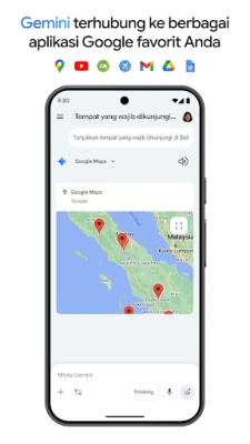 Kreativitas Anda tak terbatas dengan kemampuan Aplikasi Gemini untuk menciptakan dan menyunting gambar menakjubkan hanya dengan beberapa kata. Untuk kreasi visual yang lebih canggih, jelajahi Nano Banana Pro, yang dikembangkan berdasarkan Gemini 3, memungkinkan Anda membuat maket dengan menggabungkan gambar, mendesain poster dengan teks tajam, dan menyusun diagram dengan presisi. Aplikasi ini juga menjadi rekan belajar yang cerdas, menawarkan kuis, flashcard, elemen visual interaktif, dan contoh nyata untuk berbagai topik. Ubah file apa pun menjadi podcast yang dapat didengar kapan saja dan di mana saja. Selaras dengan ekosistem Google, Aplikasi Gemini terintegrasi mulus dengan layanan favorit Anda seperti Penelusuran, YouTube, Google Maps, dan Gmail, menyajikan ringkasan, pembahasan mendalam, dan tautan sumber, sekaligus membantu Anda merencanakan perjalanan dan mencari ide-ide baru.