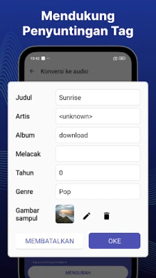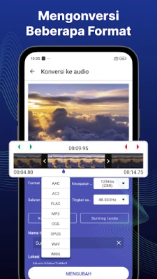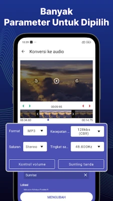 Bebaskan potensi audio dari setiap video favorit Anda dengan **aplikasi pengonversi video ke MP3** yang intuitif ini. Dirancang untuk mengubah koleksi visual Anda menjadi pengalaman pendengaran berkualitas tinggi, aplikasi ini memungkinkan Anda mengekstrak trek audio yang jernih dengan presisi. Cukup pilih bagian video yang Anda inginkan, pangkas sesuai kebutuhan, dan saksikan bagaimana klip tersebut berubah menjadi audio yang sempurna hanya dalam hitungan detik. Baik untuk membuat ringtone unik, mendengarkan podcast, atau menyimpan musik latar, aplikasi ini adalah alat bantu esensial untuk kebutuhan audio Anda.