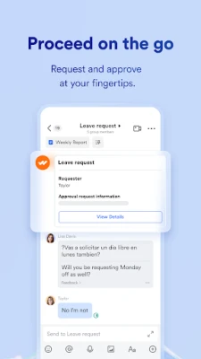 Kelola hari kerja Anda dengan mudah menggunakan Kalender Lark yang terintegrasi. Dari setiap undangan rapat, Anda dapat langsung menginisiasi obrolan grup, panggilan video, atau bahkan membuat memo rapat untuk efisiensi maksimal. Perlu terhubung secara langsung? Lark memungkinkan Anda memulai panggilan video atau audio berkualitas tinggi hanya dengan satu ketukan, memastikan tim Anda selalu terhubung kapan pun dan di mana pun. Selanjutnya, optimalkan alur kerja internal seperti pengajuan penggantian dana atau permohonan cuti tahunan melalui aplikasi Persetujuan dan Kehadiran yang terautomatisasi.