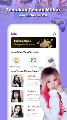Lita, pelopor aplikasi teman mabar terbesar di Indonesia. Temukan ribuan gamer profesional dan berpengalaman untuk push rank bersama. Ngobrol langsung dengan idola pro player atau YouTuber favorit Anda, dan perluas lingkaran pertemanan gamer Anda.